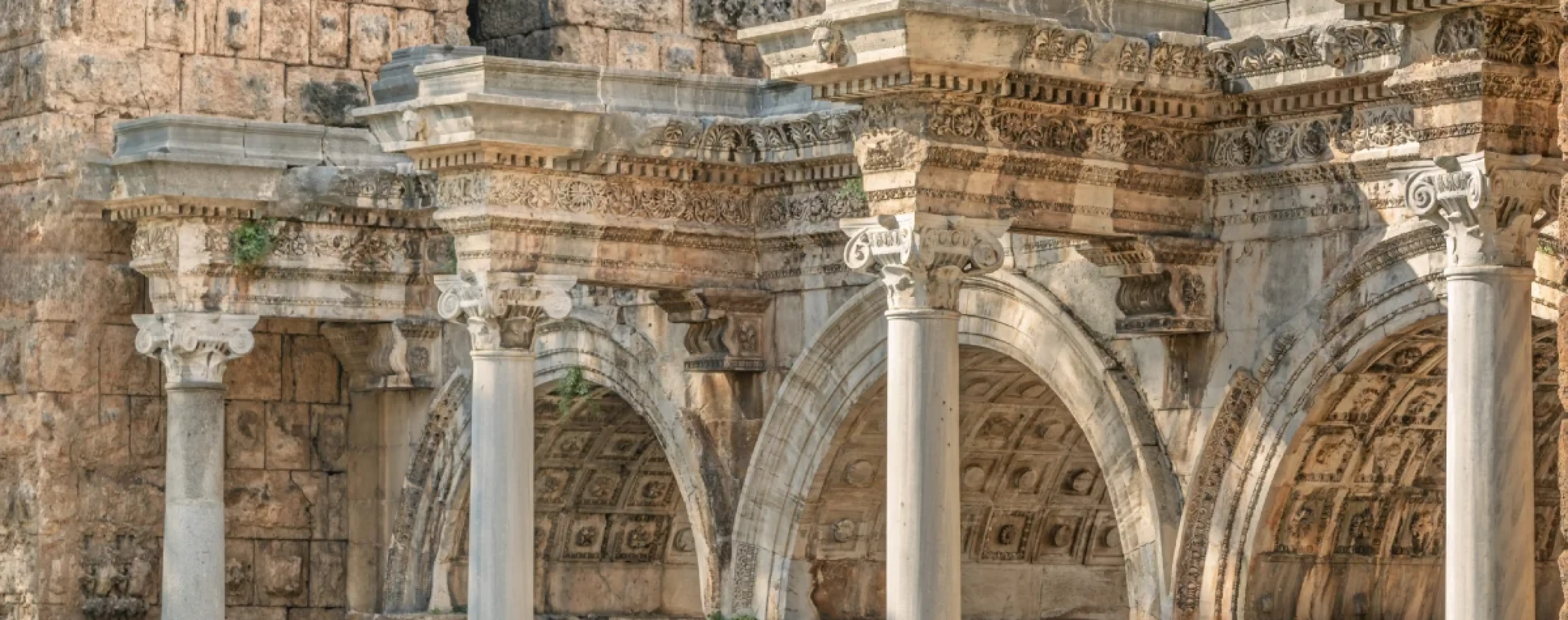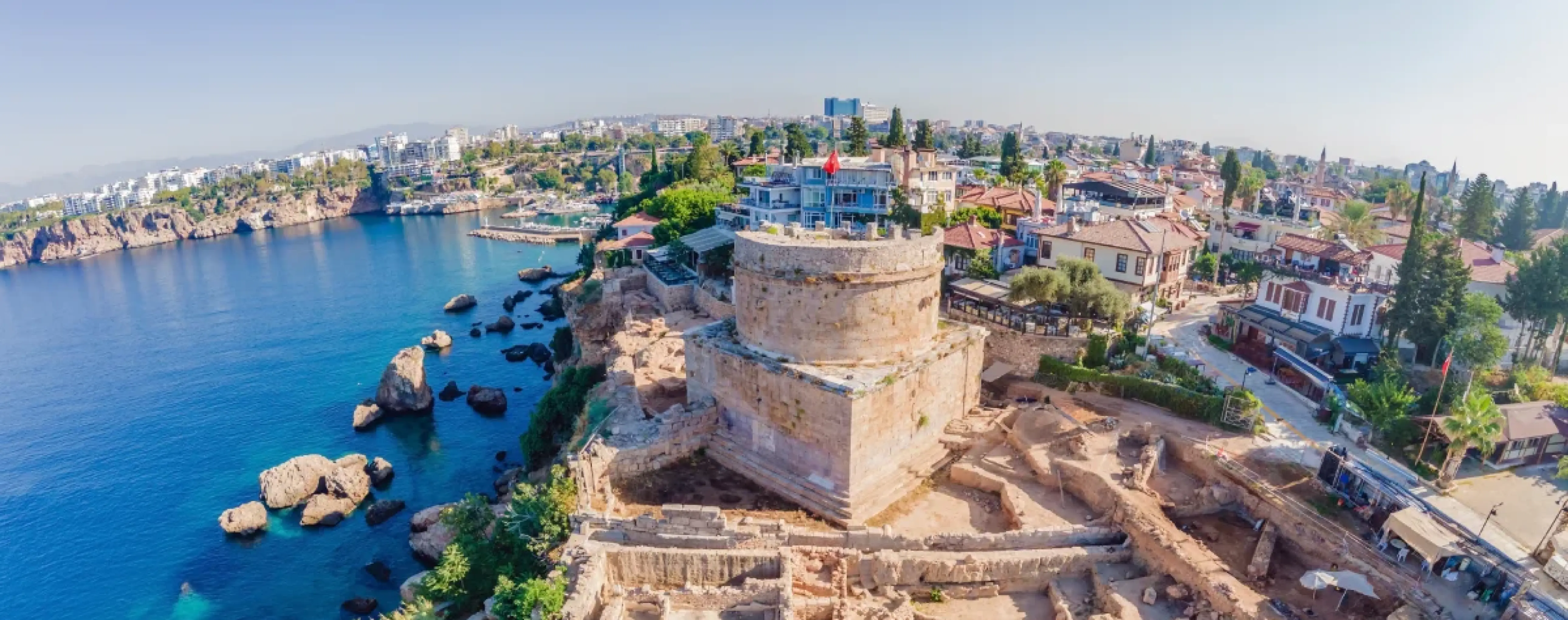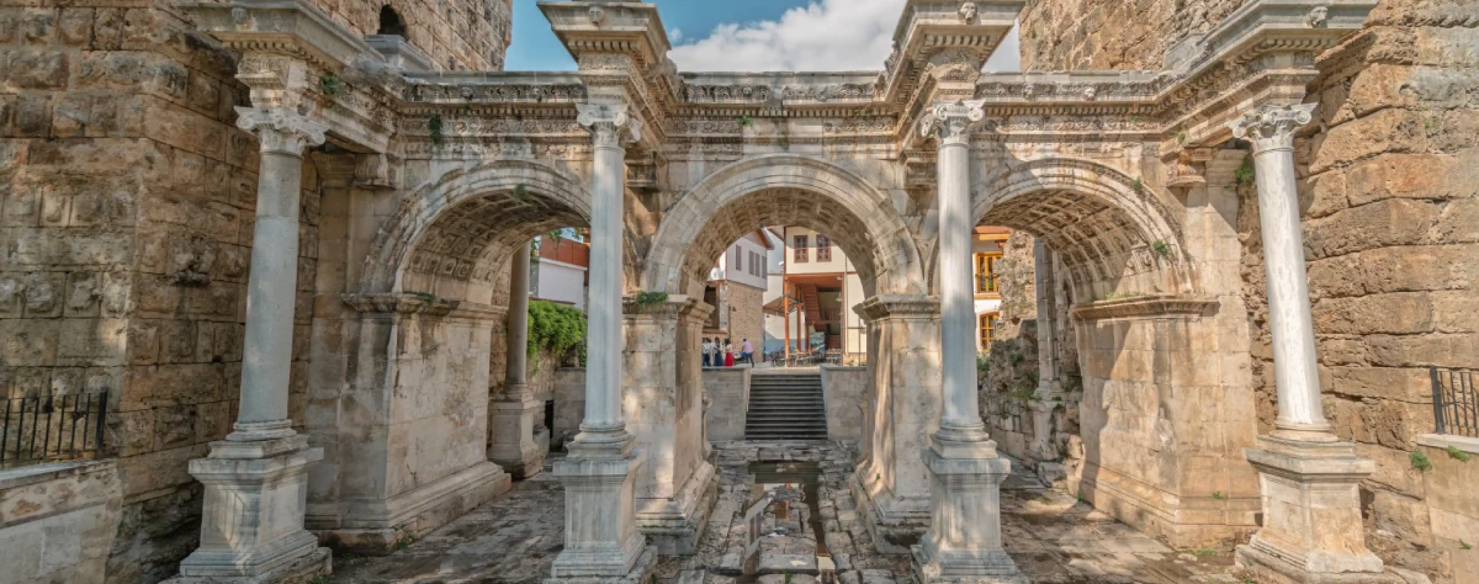 The old town of Kaleici is a maze of narrow streets, historic houses and small squares by the old harbor, where a maritime atmosphere remains and a marina operates. In the heart of the historic quarter you can see Hadrian's Gate and remnants of the city wall, and walks along the waterfront offer beautiful views of the sea and coastal architecture.