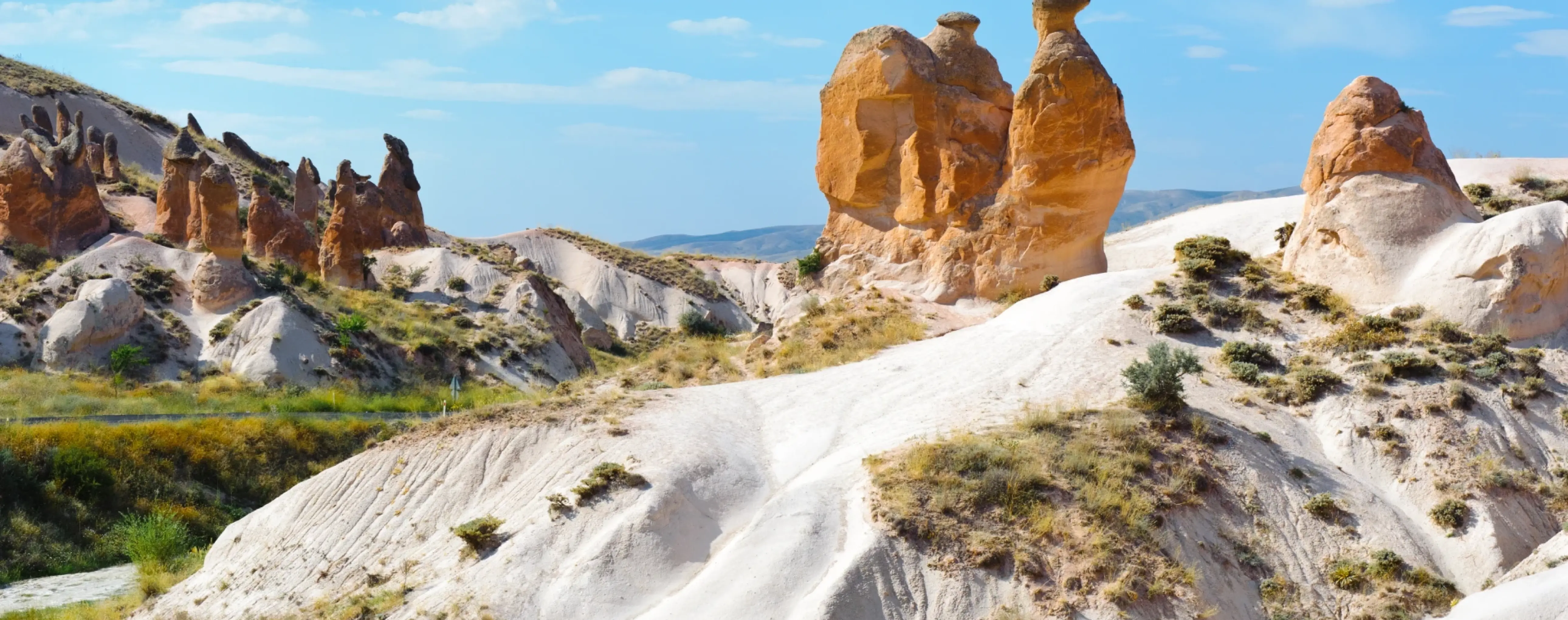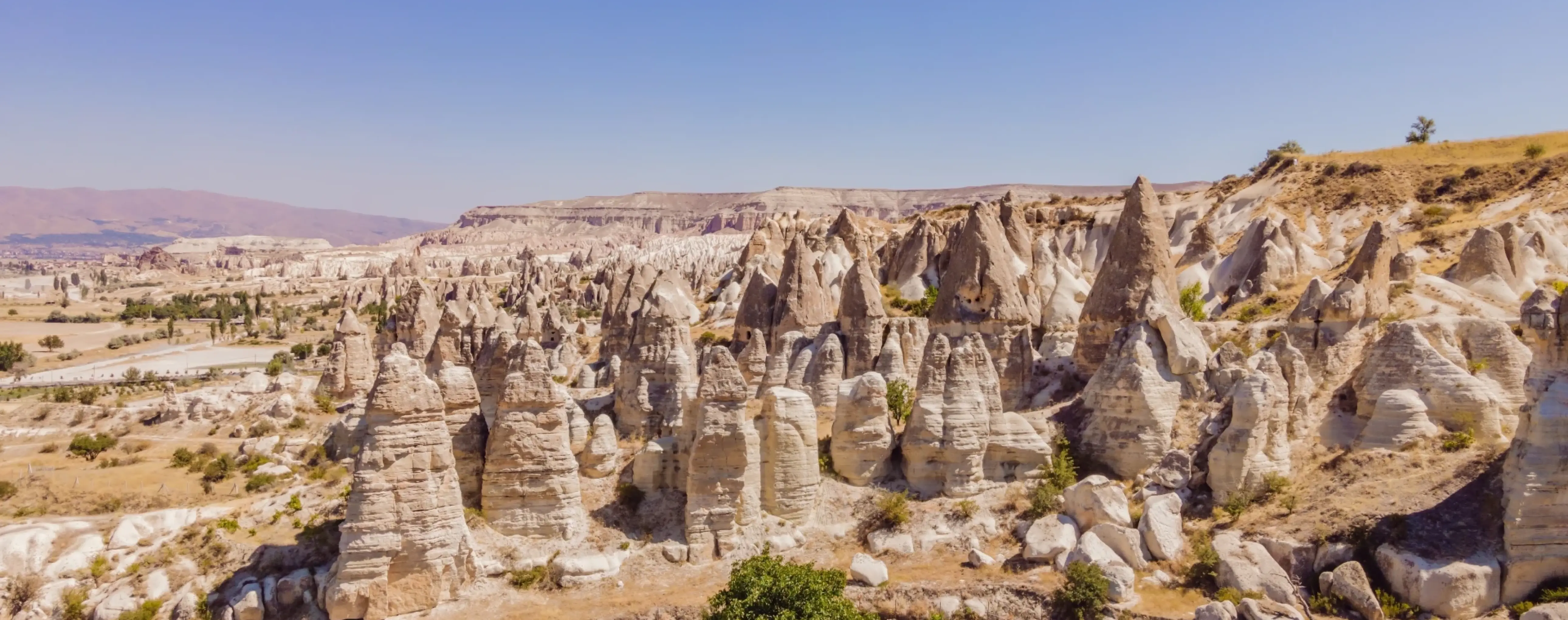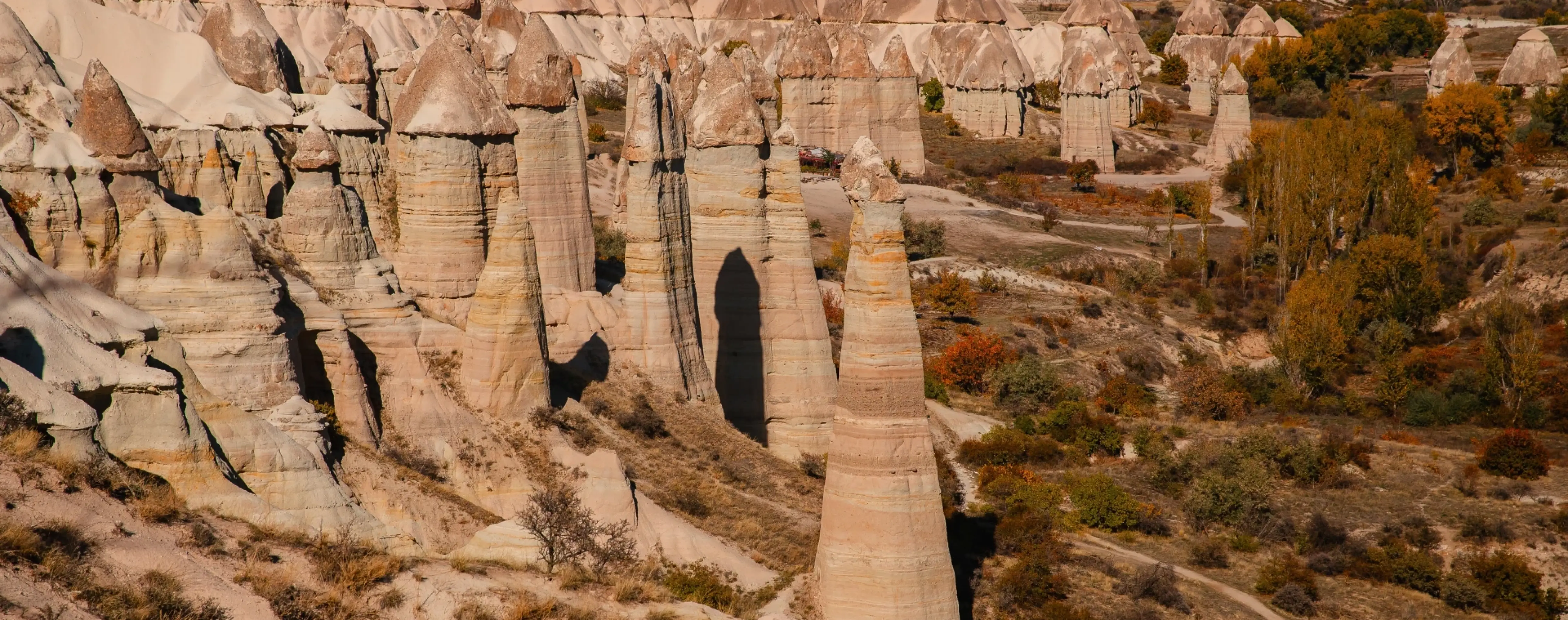 Above ground, rock-cut churches and monasteries with wall paintings attract attention, as do the unique "fairy chimneys" - pillar-like formations in the valleys. Popular walks include Rose Valley, Love Valley and Pigeon Valley, where marked hiking routes and panoramic viewpoints are laid out. Fortified heights are visible at Uchisar and Ortahisar, offering views over the surrounding valleys.
