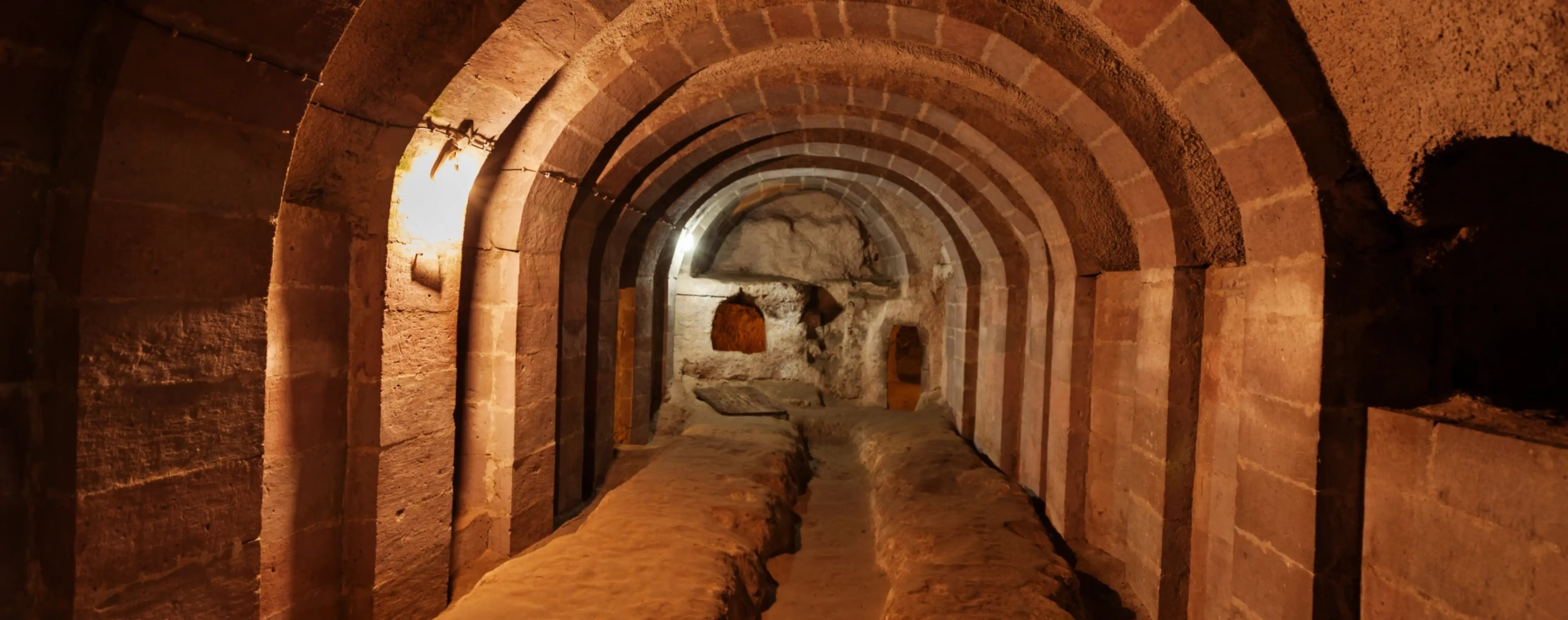 One of the most impressive attractions of the region are the underground cities, notably Derinkuyu and Kaymakli. Derinkuyu opens up to visitors with up to eight underground levels of narrow passages, shafts and living spaces - such complexes served as shelters for thousands of people during times of war and raids. Visiting the underground cities gives an insight into the ancient builders' well-thought-out ventilation systems and defensive structures.