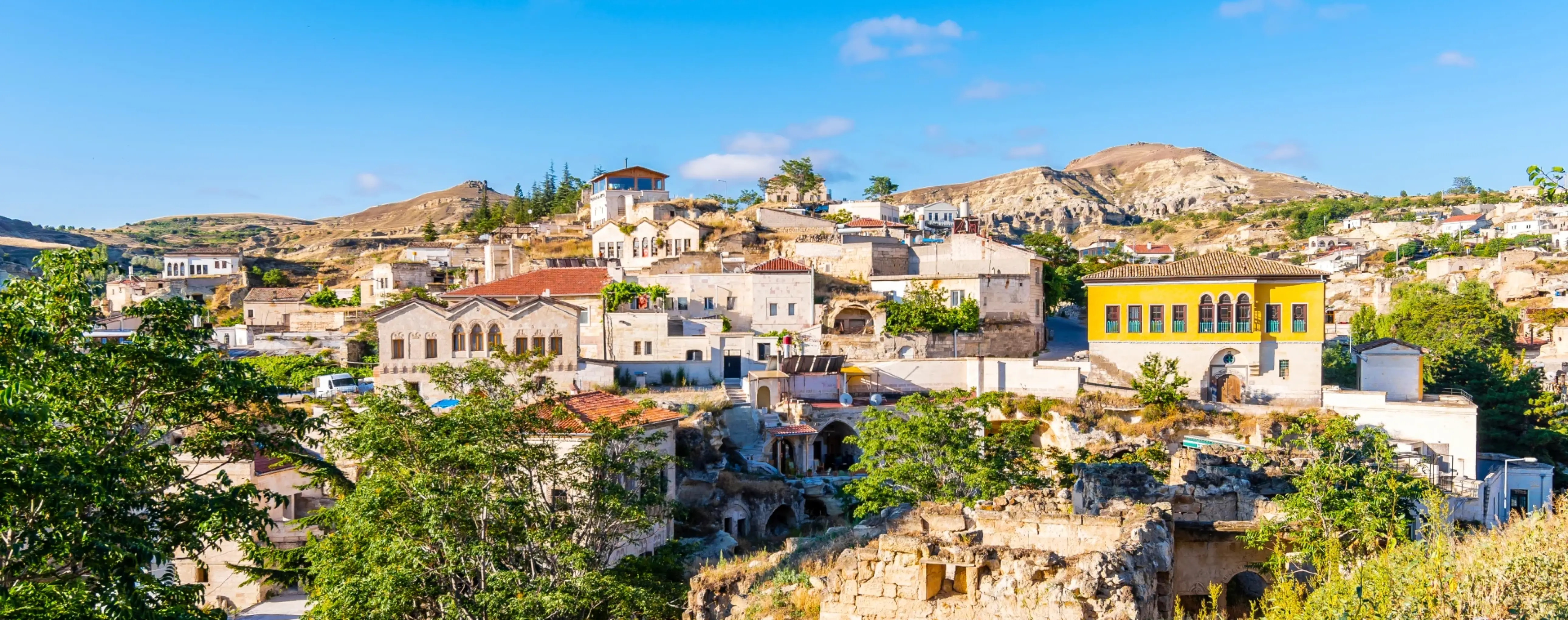 The landscape and settlements create a unique atmosphere: cave houses, traditional ways of life and crafts are preserved in the valleys and villages. At the same time, the region has developed tourist infrastructure - from small guesthouses and family pensions to designer cave hotels and modern tourist services.