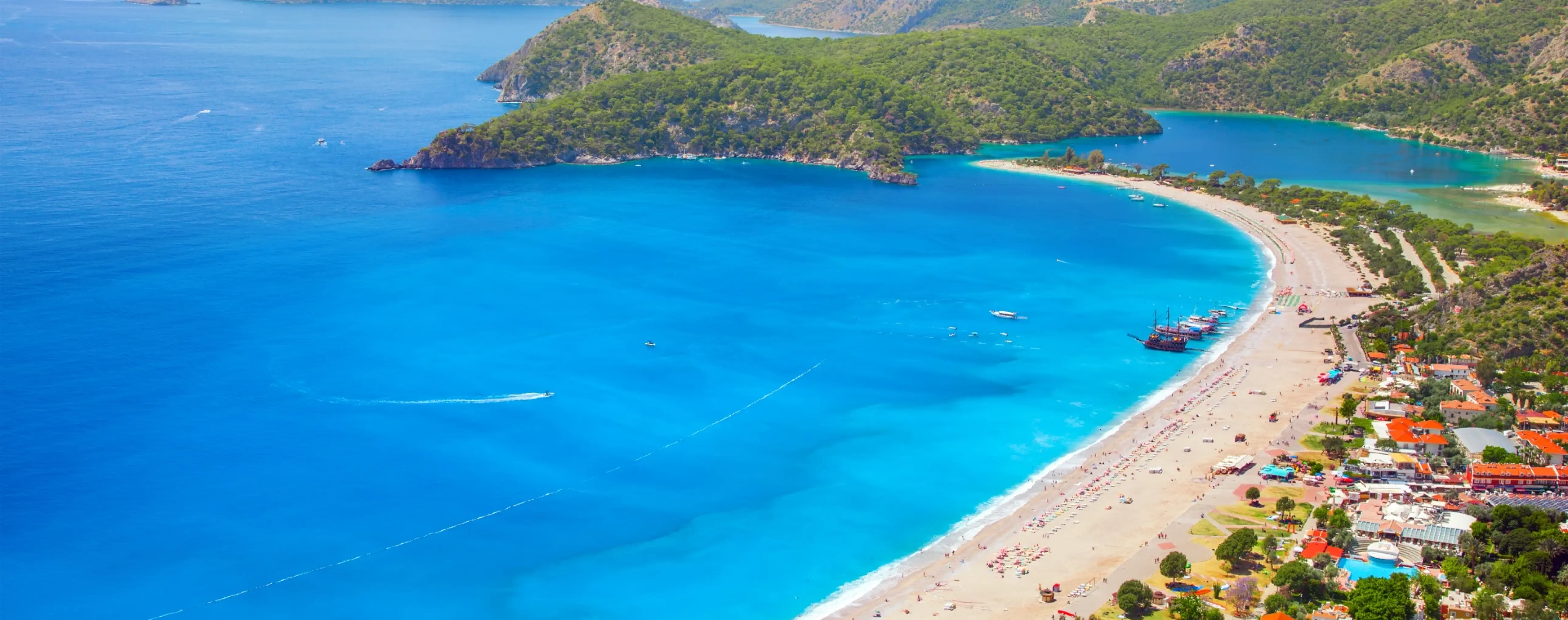 The main natural attraction of the area is Oludeniz bay with the legendary Blue Lagoon, where the water is exceptionally clear and calm. Oludeniz is considered one of the best beaches in Turkey for family holidays and is also a world center for paragliding - launches from Mount Babadag let you soar above the shore and admire the panorama of the bay.
