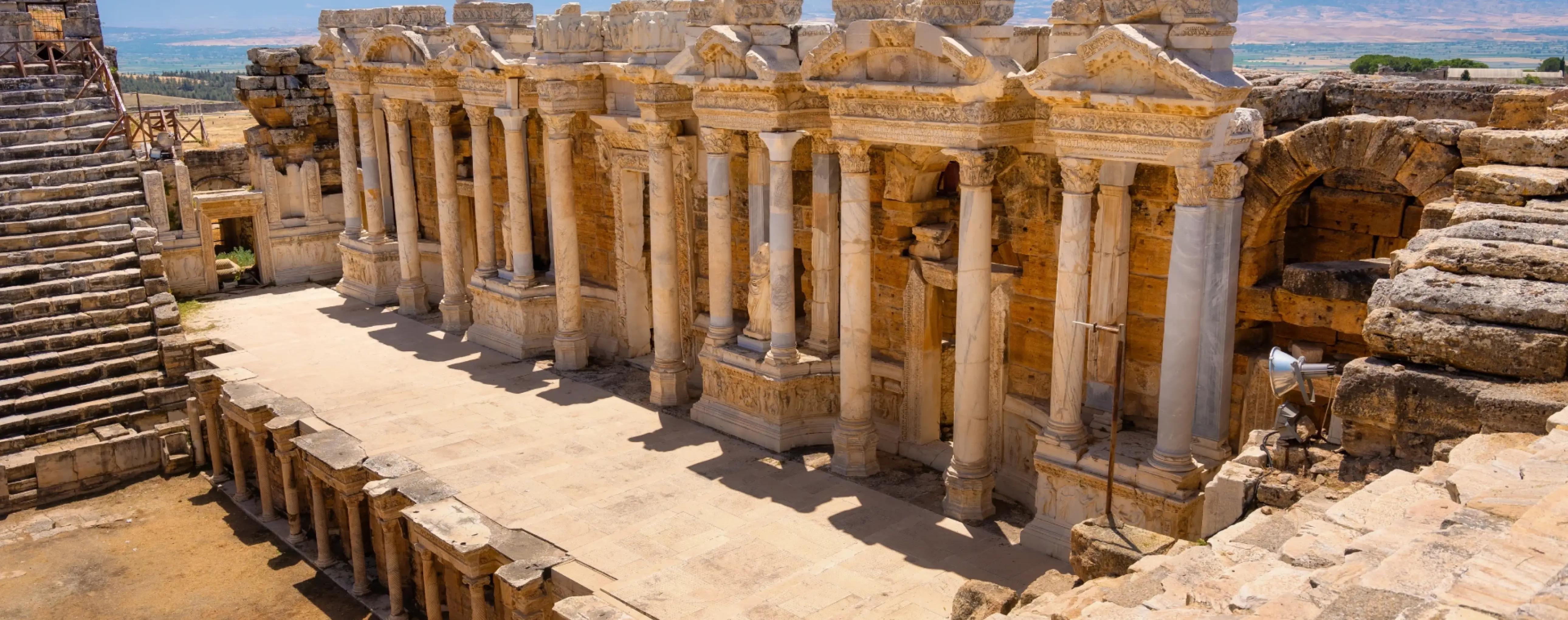The main tourist area of Pamukkale includes the Hierapolis archaeological park with a well-preserved Roman theater, a complex of thermal baths and a huge necropolis. The Hierapolis Museum, located in the premises of the ancient baths, displays sarcophagi, statues and other finds that reflect the life and culture of the region in antiquity.