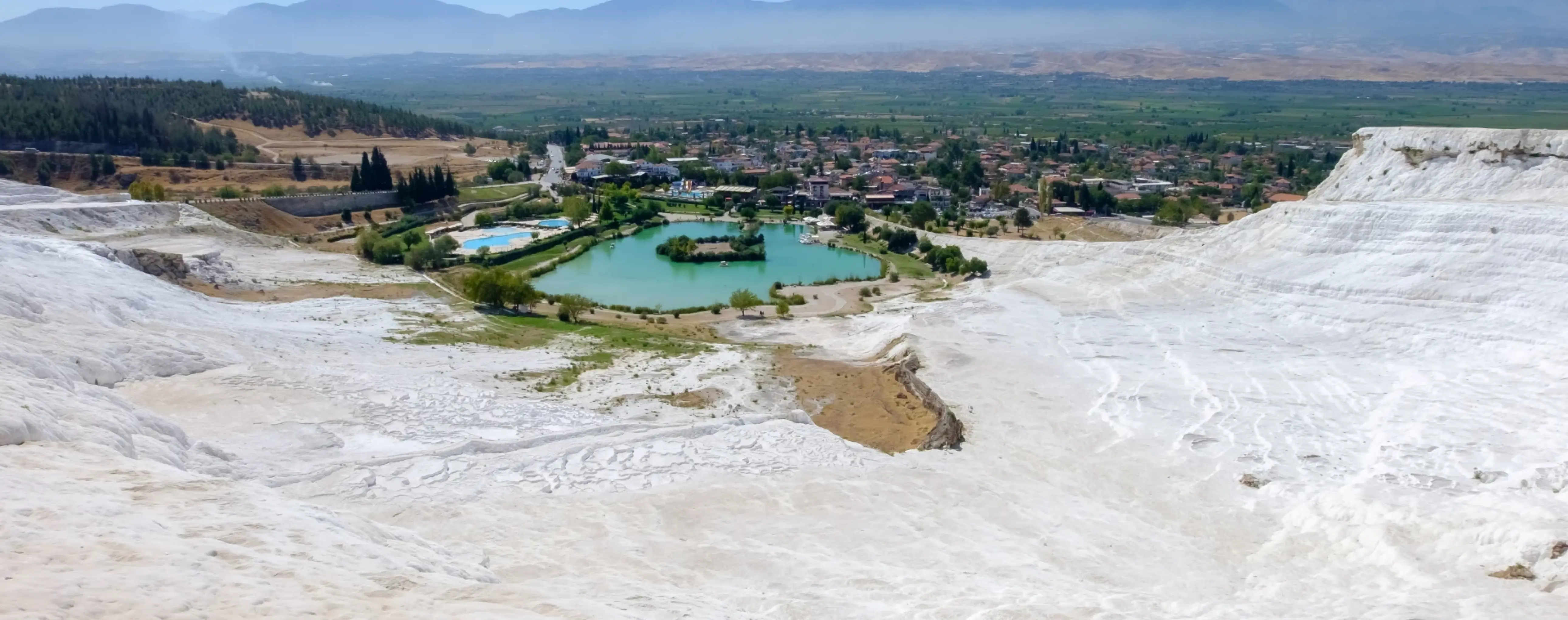 Geographically, Pamukkale is located on a plateau near the city of Denizli - about 20 km from its center. Larger settlements in the region, such as Izmir and Manisa, are at greater distances, but tours and transfers are regularly organized from these cities. The nearest airport is Denizli-Cardak Airport, from which you can reach Pamukkale by transfer or local buses.