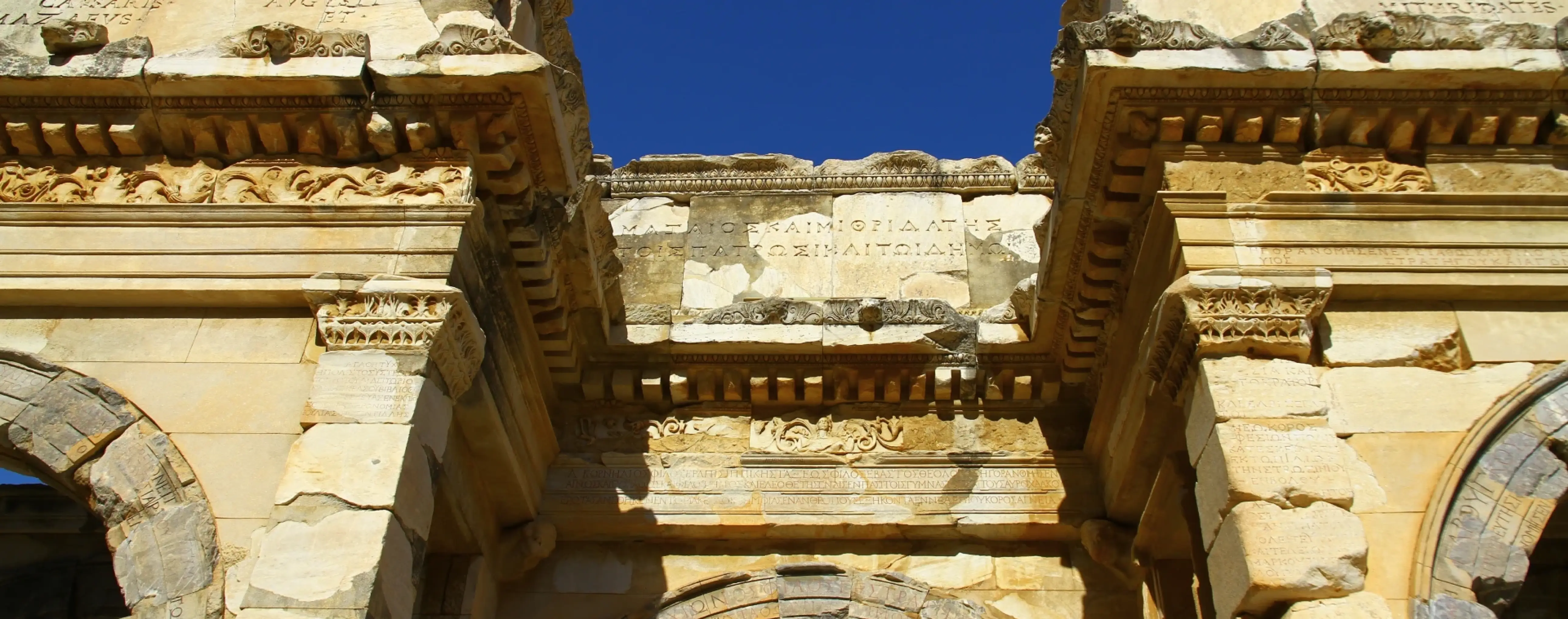 The archaeological area contains the main monuments of the ancient city: the 2nd-century AD Library of Celsus, the Great Theatre, Curetes Street, the Temple of Hadrian, and both the Upper and Lower agoras. The Terrace Houses with mosaics and frescoes are open with a separate ticket. Interpretive panels along the route help you understand the layout and history of the complex.