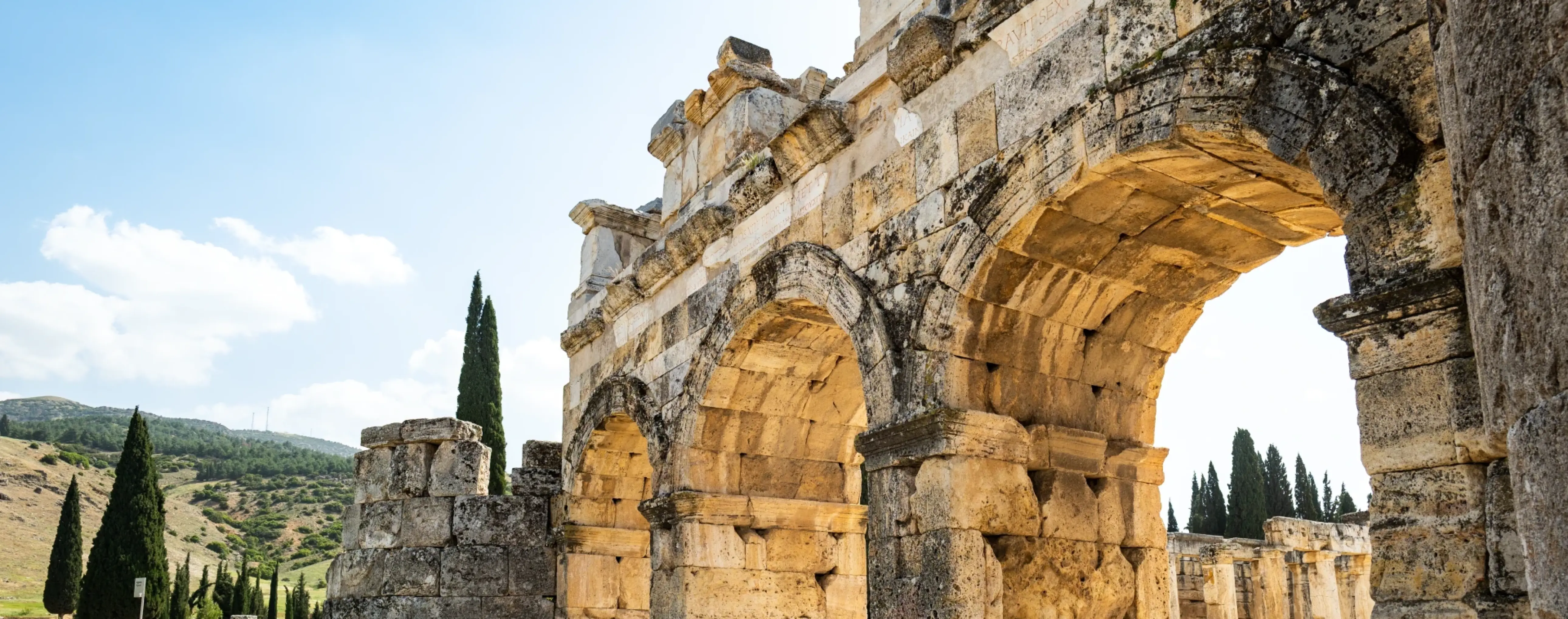 The monument is part of the Hierapolis-Pamukkale archaeological complex, included on the UNESCO World Heritage List. A visit to the gate is usually combined with the ancient theater, the necropolis, the Pamukkale terraces, and the archaeological museum, so the site is especially interesting for those who want to see not an isolated monument but the complete structure of an ancient city.