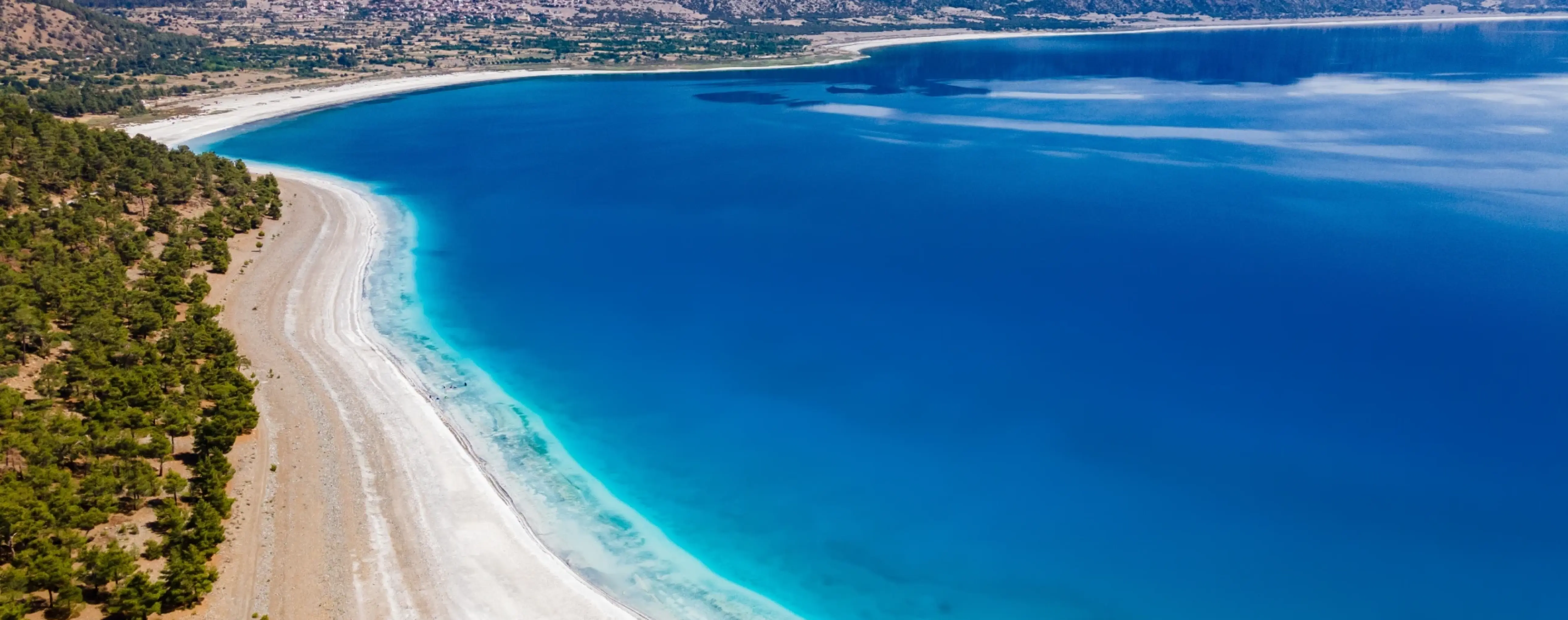 Salda is known for its light-colored shoreline areas, formed by mineral deposits associated with hydromagnesite and magnesite. Thanks to these formations, some parts of the shore appear almost white. The lake water is clear, with a high mineral content, and the surface color changes depending on the light, depth, and season.